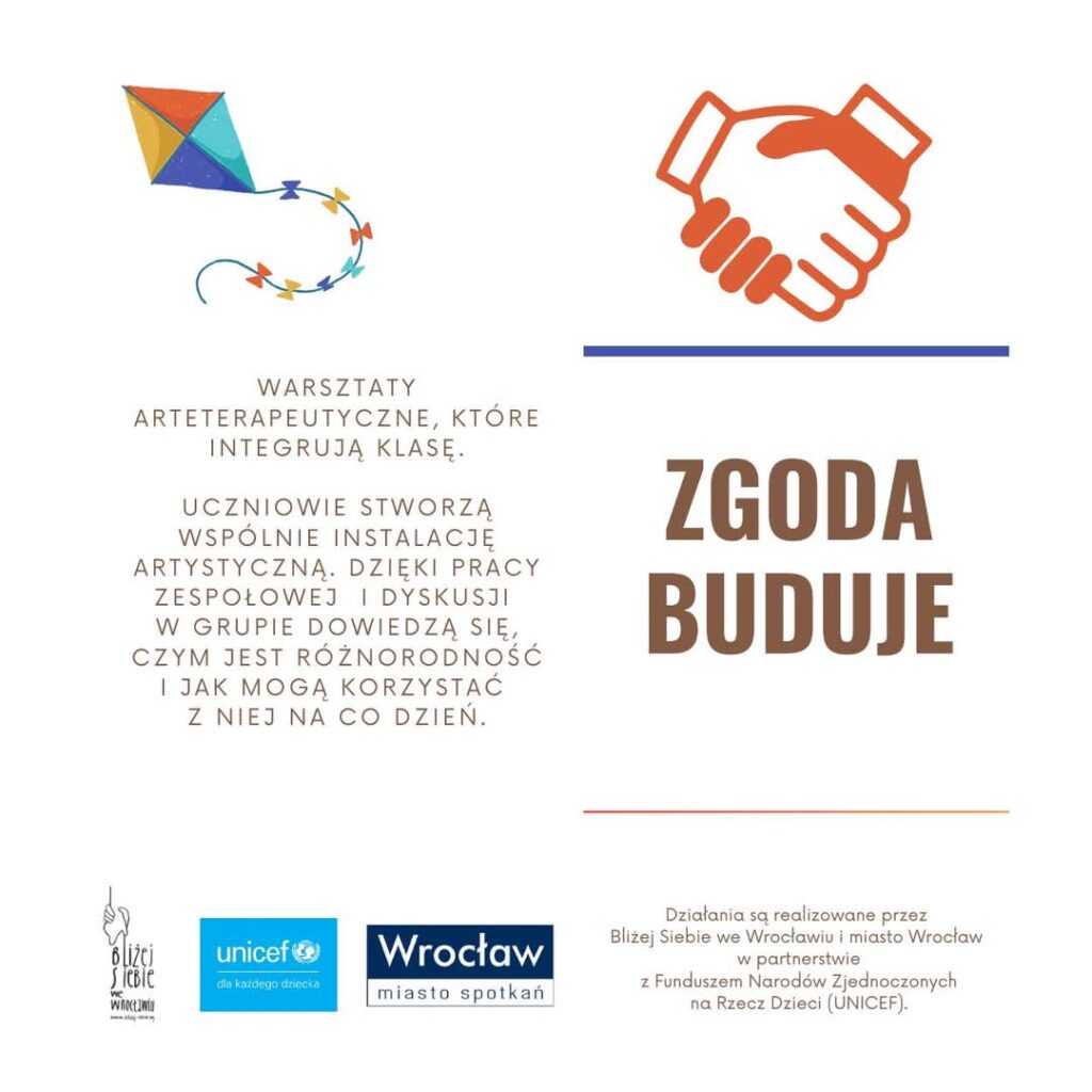 Warsztaty arteterapeutyczne ZGODA BUDUJE to zajęcia, podczas których uczniowie klas podstawowych tworzyli Krainę zgody i wspólną artystyczną instalację.