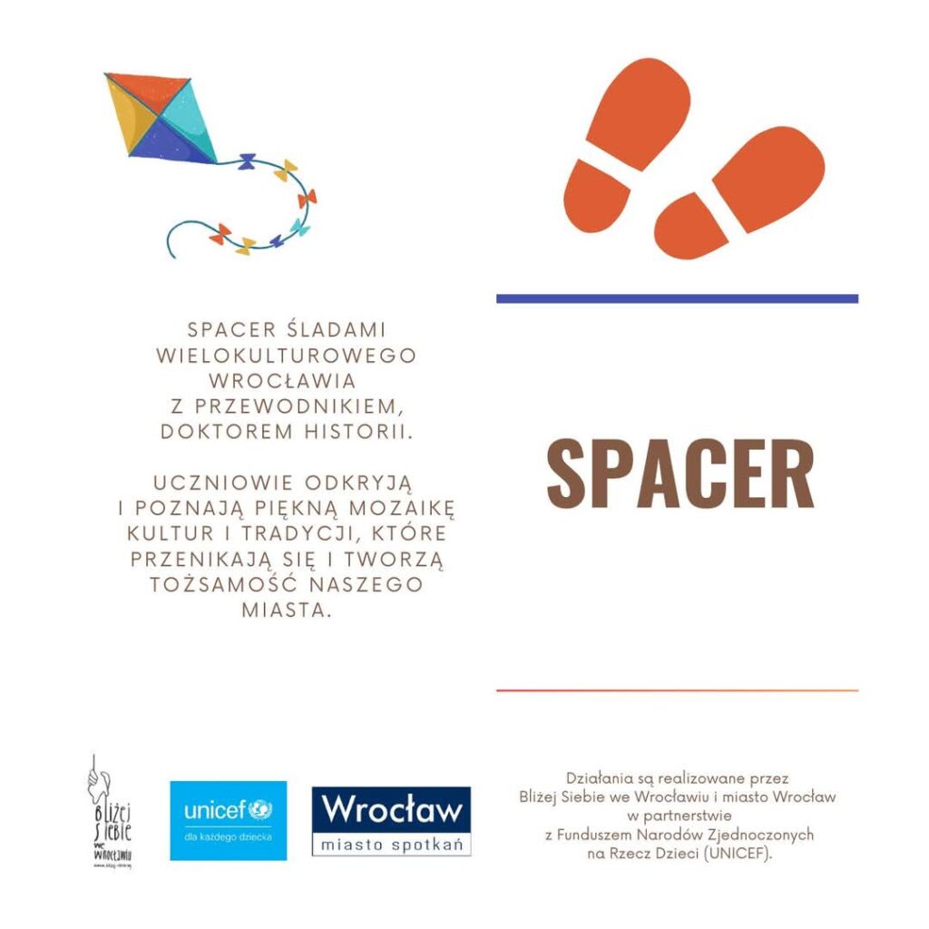 SPACER to warsztat przeznaczony dla klas wielokulturowych szkół ponadpodstawowych. Po Wrocławiu młodzież wędrowała z doktorem Tomaszem Sielickim z wydawnictwa Wrocławski Neptun, historykiem i pasjonatą Wrocławia. Zajrzyjcie na Facebooka wydawnictwa Wrocławski Neptun i zasubskrybujcie kanał na YouTubie, jeśli interesują Was ciekawostki i perełki historyczne o naszym mieście.